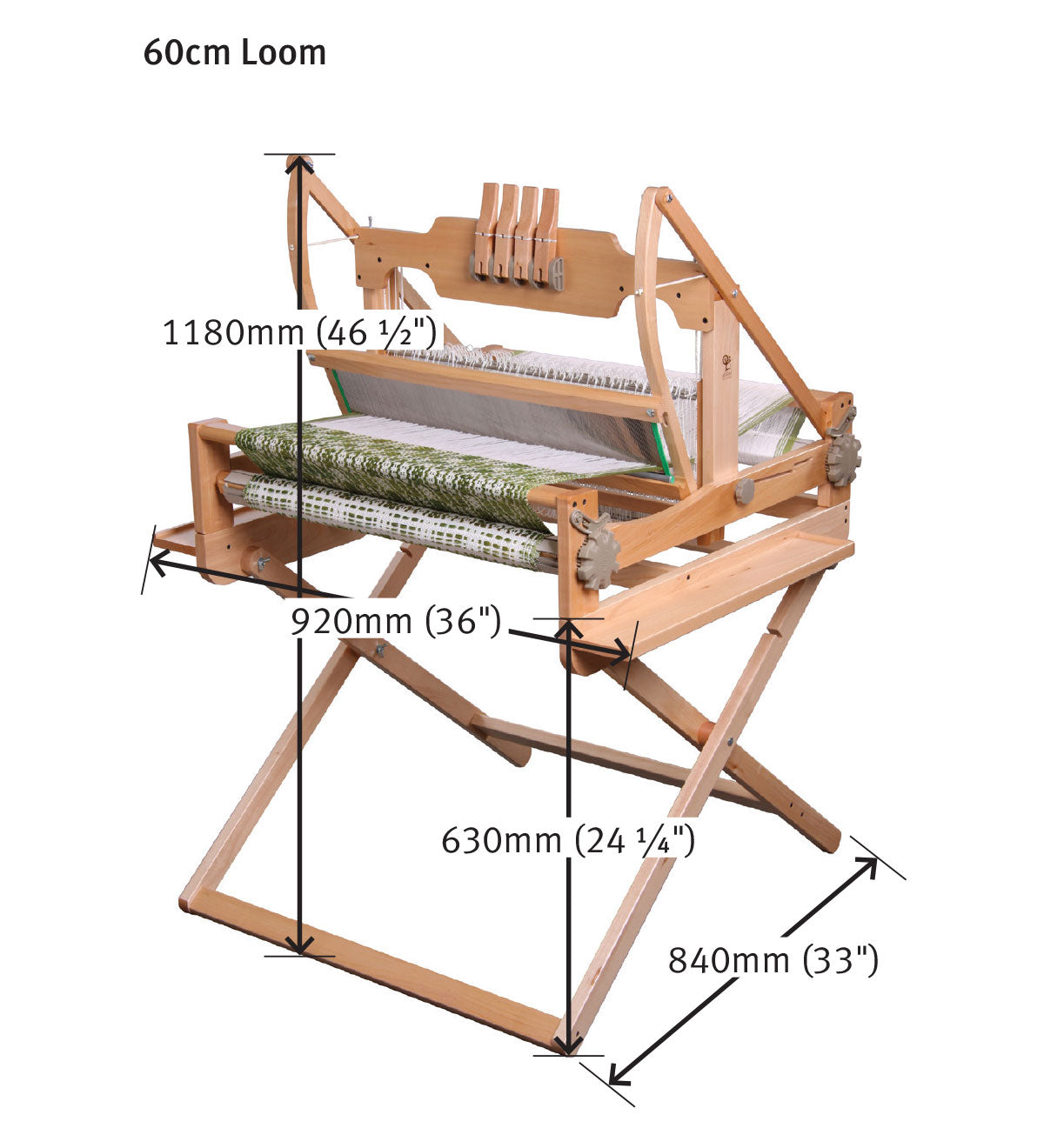 Height from floor to base of table loom is 62.5cm (24½ins)
