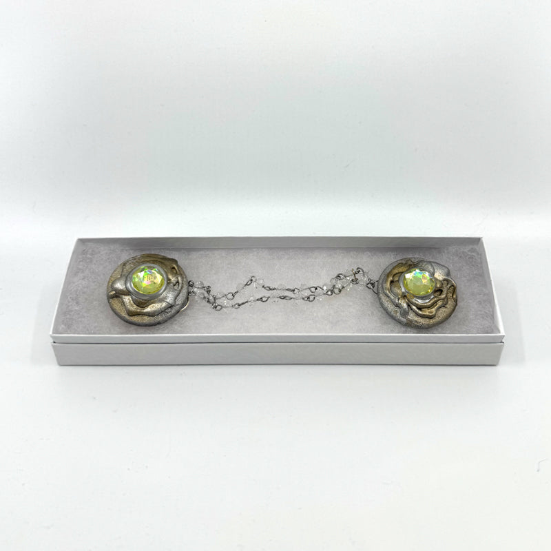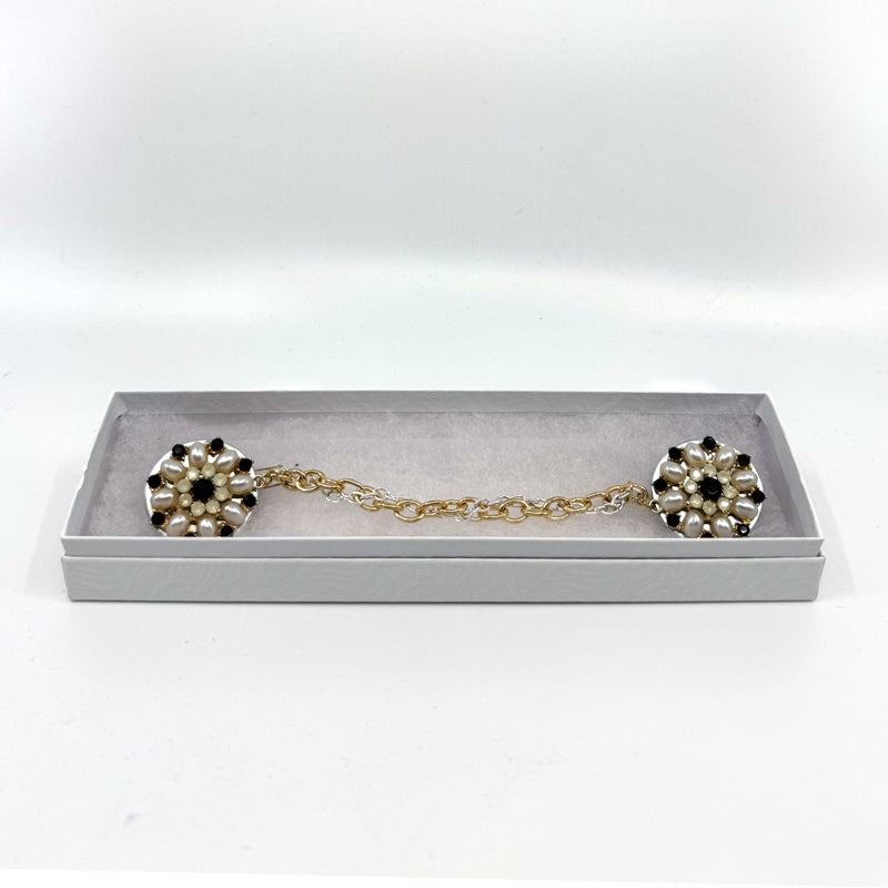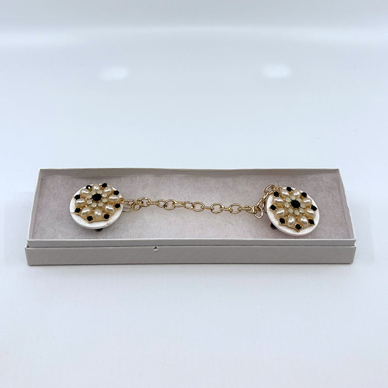 In additional to being a reminder of fashionable yet vintage jewelry, these functional hand made decorative clips help to keep a sweater, cardigan, or jacket on and your shoulders warm while freeing up your arms.
